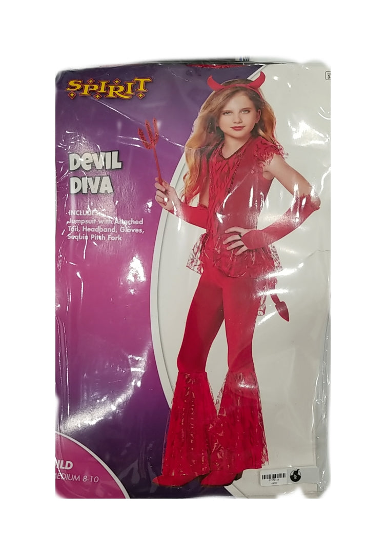 Jumpsuit with tail/headband/gloves/sequin pitch fork