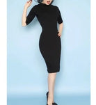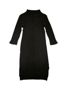 Black knit rib mock neck sweater dress