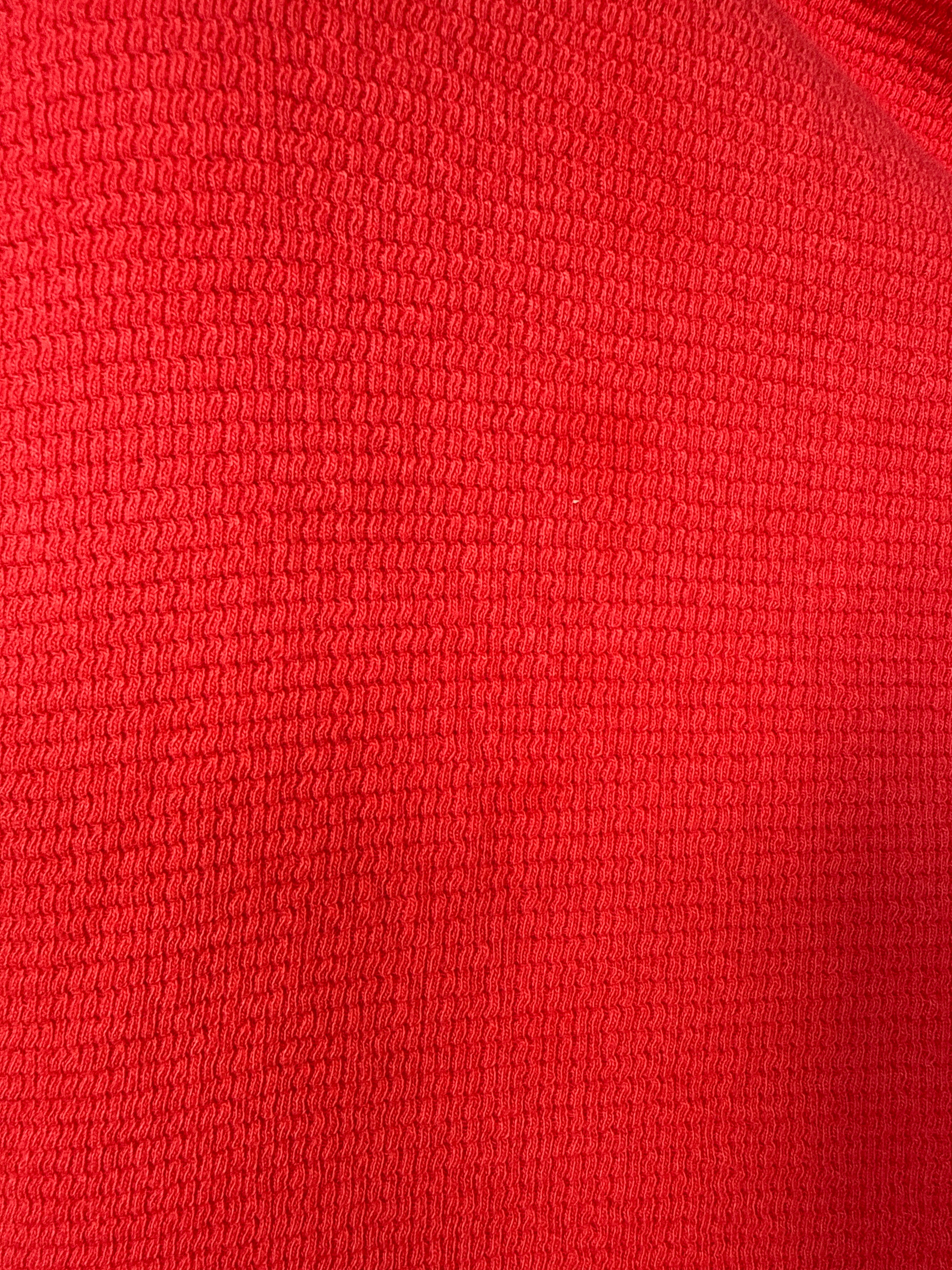 Faint stain on front of shirt , Red